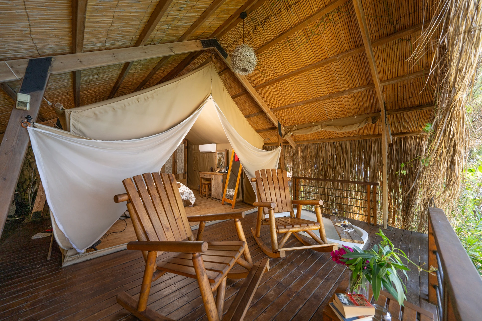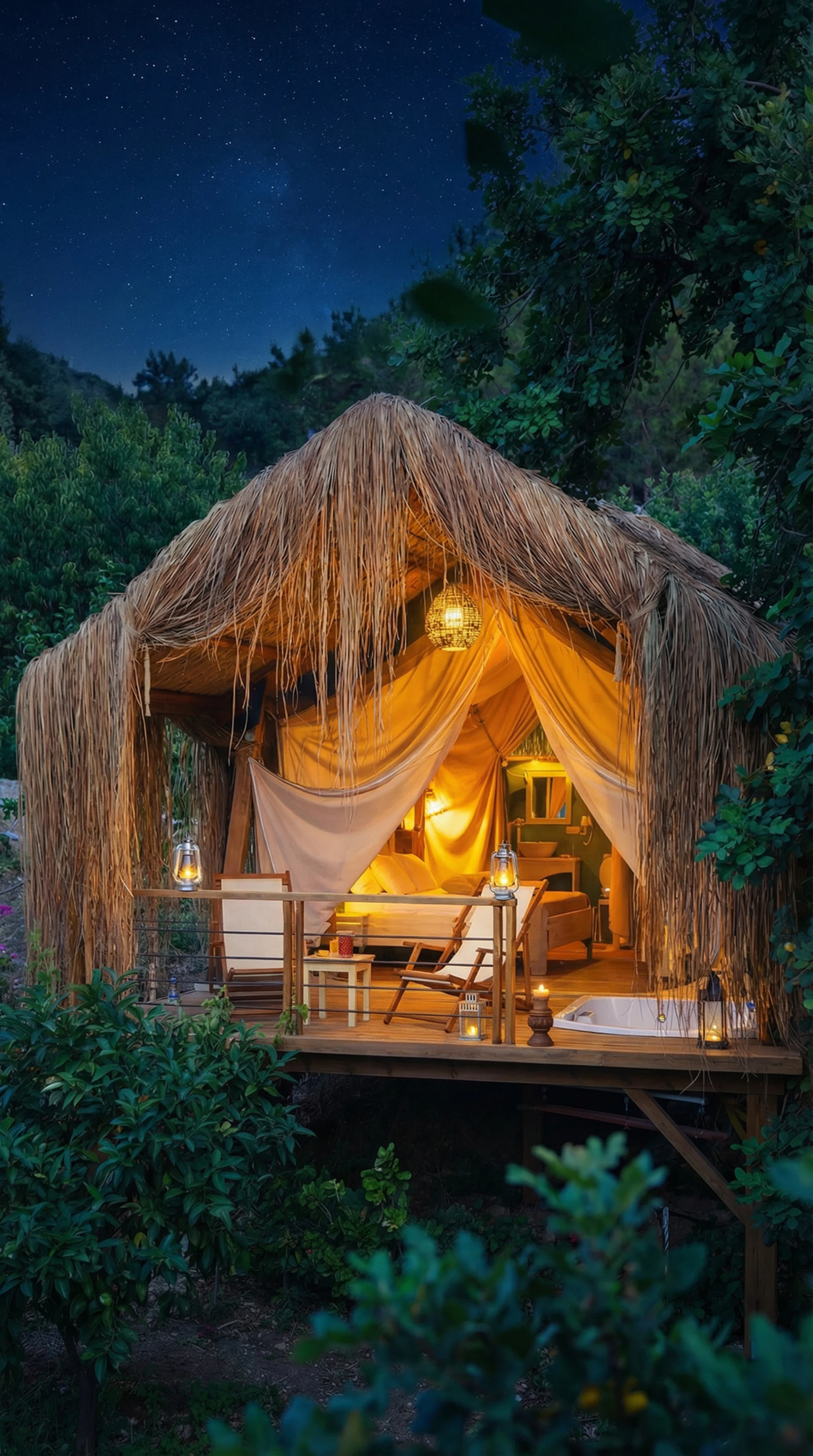 As the sweet aroma of fruit trees lingers in the air, immerse yourself in the peaceful surroundings. Let the soothing ambiance of your private veranda and jacuzzi bring you closer to nature, where every moment is an invitation to unwind and reconnect with the world around you.